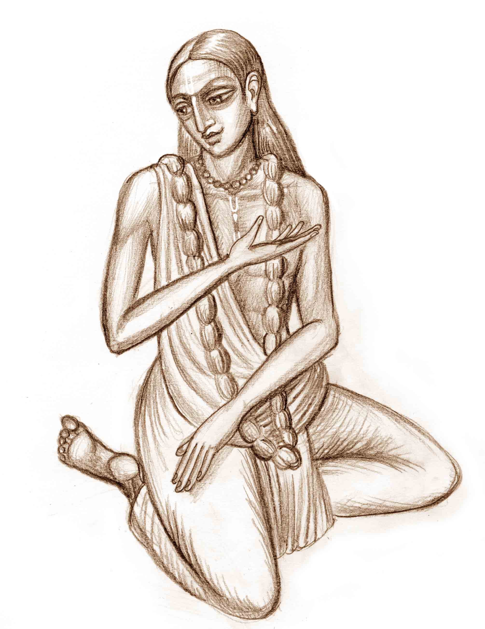 Rādhā-bhāva-dyuti-subalitaṁ naumi Kṛṣṇa-svarūpam: Hän oli täysin syventynyt Shri Gaurangan käsitteeseen [2]. Gauranga oli ottanut häneltä kaiken, joten hänellä ei ollut muuta vaihtoehtoa: hän oli täysin syventynyt, kaikin tavoin Hänen lumoissaan.