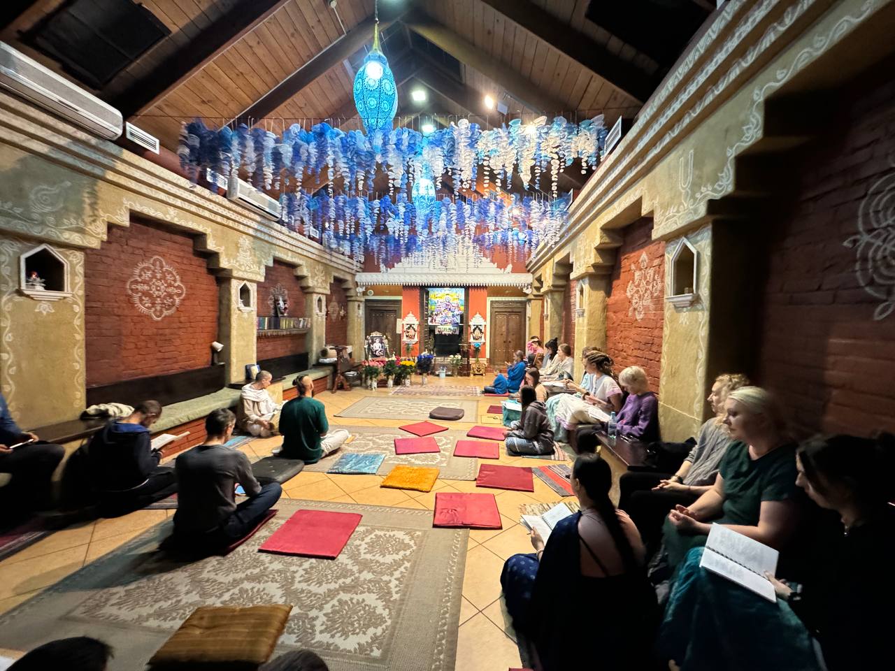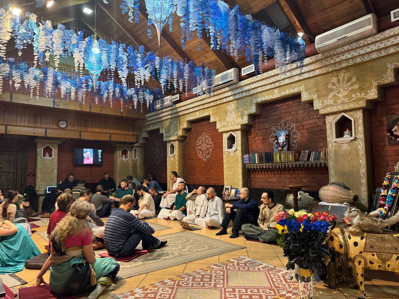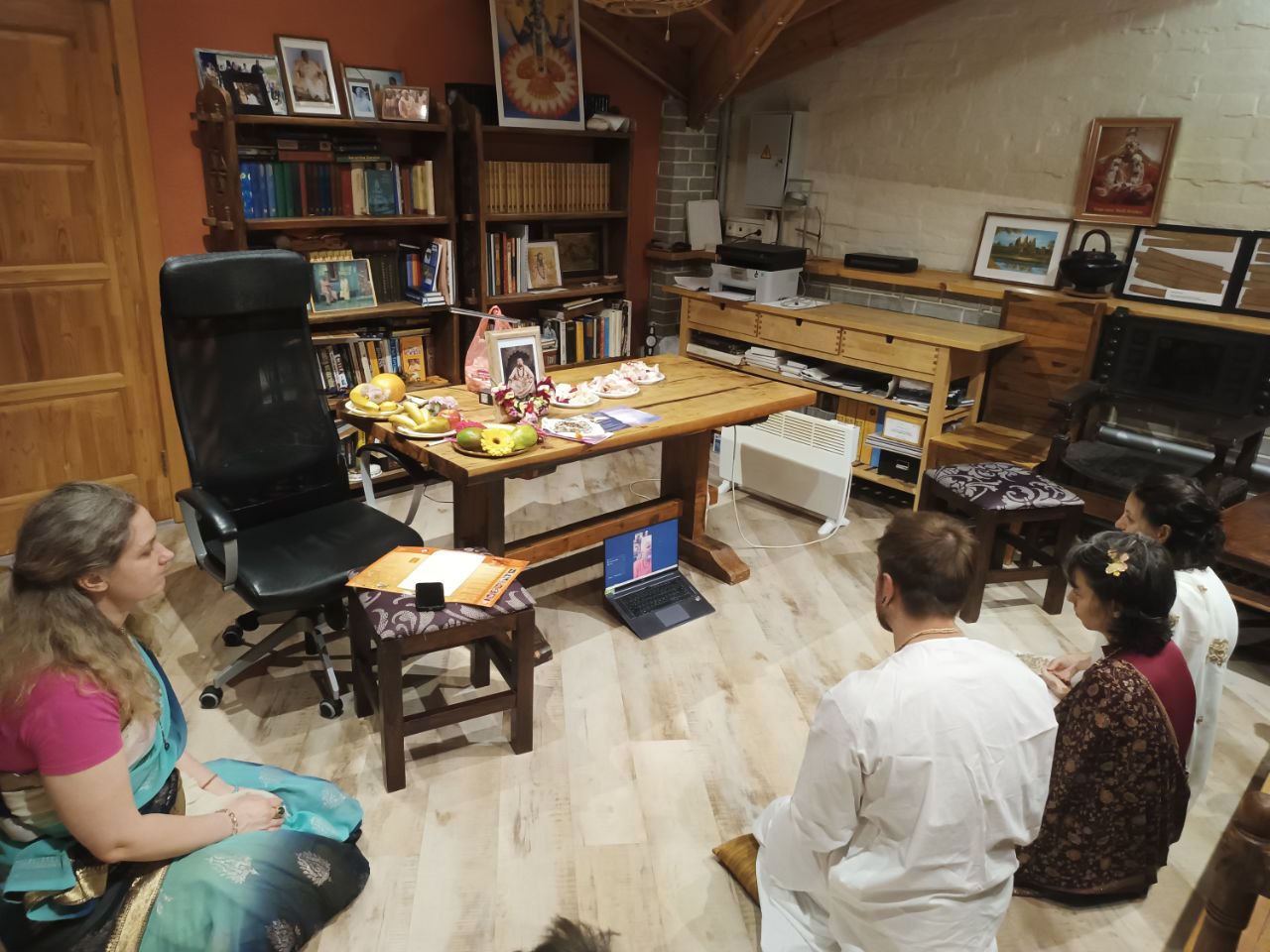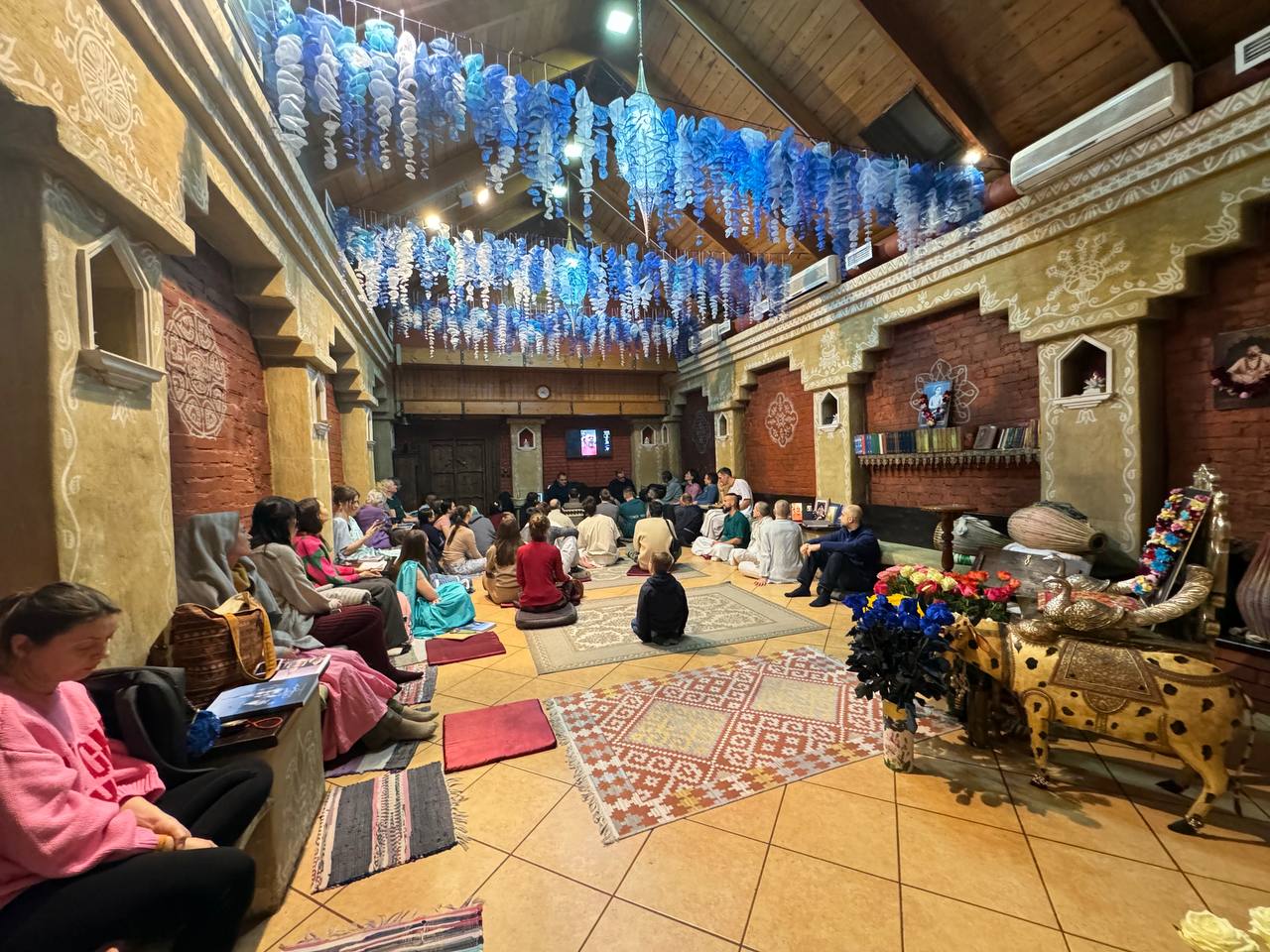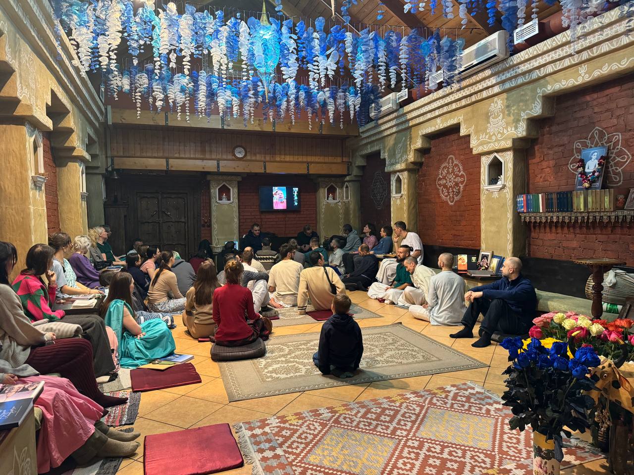 Авадхут Махарадж давал праздничную лекцию в честь дня явления Нитьянанды, мы подключились к трансляции, так что праздничная програма прошла с online-эфиром Шрила Бхакти Бимала Авадхута Махараджа.