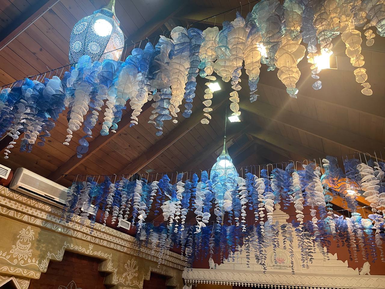 Целая команда преданных подготовила специальные украшения для алтарной для празднования дня явления Шри Нитьянанды Прабху.