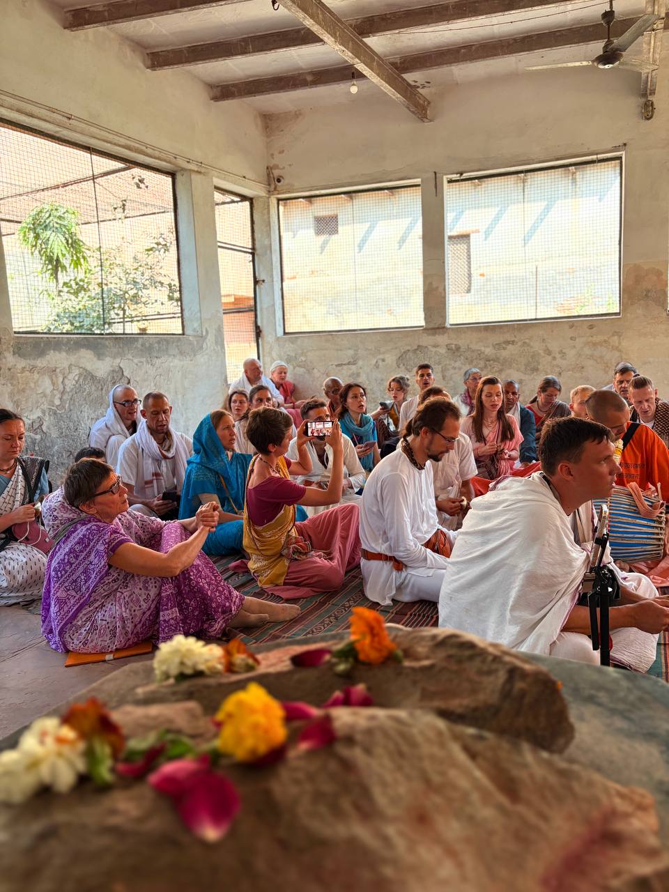 Парикрама по Вриндавану. День 9. Нитьянанда-ват, Кеши-гхат, самадхи Билвамангала Тхакура, самадхи Шрилы Локанатха Даса Госвами, Шрилы Нароттама Даса Тхакура и Шрилы Вишванатха Чакраварти Тхакура, Шри Гопала Бхатты Госвами, Шьямананды Прабху, Сева-кундж, храм Шри Радхи-Дамодара, храм Джаганнатха, Гопешвар Махадев, Шри Вамшиват, храм Радхи-Гопинатха. Шрила Б. Б. Авадхут Махарадж, Шрила Б. С. Хришикеш Махарадж. 6 марта 2026 года. Вриндаван Дхама, Индия