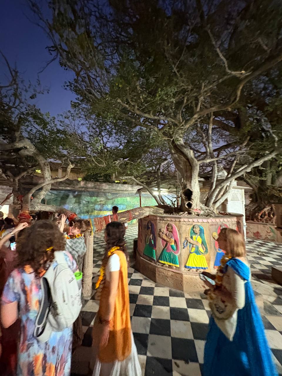 Лекция Шрилы Б. Б. Авадхута Махараджа в Нитьянанда-вате. Под этим деревом Шрингар жил Нитьянанда Прабху во время Своего пребывания во Вриндаване.